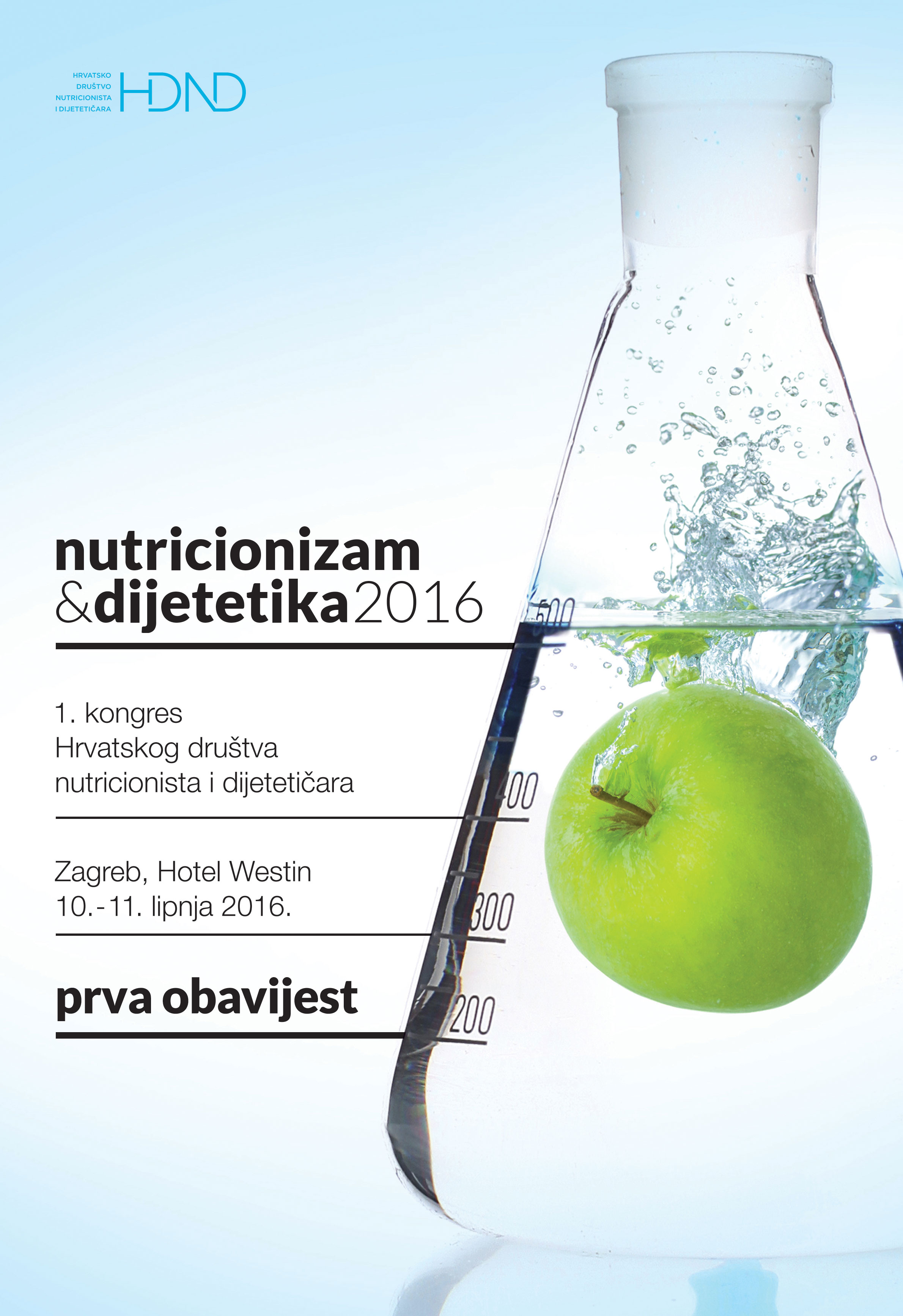 Čast nam je pozvati Vas na međunarodni kongres „NUTRICIONIZAM I DIJETETIKA 2016“, 1. Kongres Hrvatskog društva nutricionista i dijetetičara koji će se održati od 10. – 11. lipnja 2016. u Zagrebu, u Hotelu Westin. Međunarodni kongres plod je i nastavak našeg zajedničkog rada te domaće i međunarodne suradnje. Izniman trud brojnih kolega i porast interesa za našu struku daje nam vjetar u leđa da budemo još bolji, razvijamo naše kompetencije i rastemo zajedno. Pozivamo Vas da svojim sudjelovanjem kongres učinite još uspješnijim.